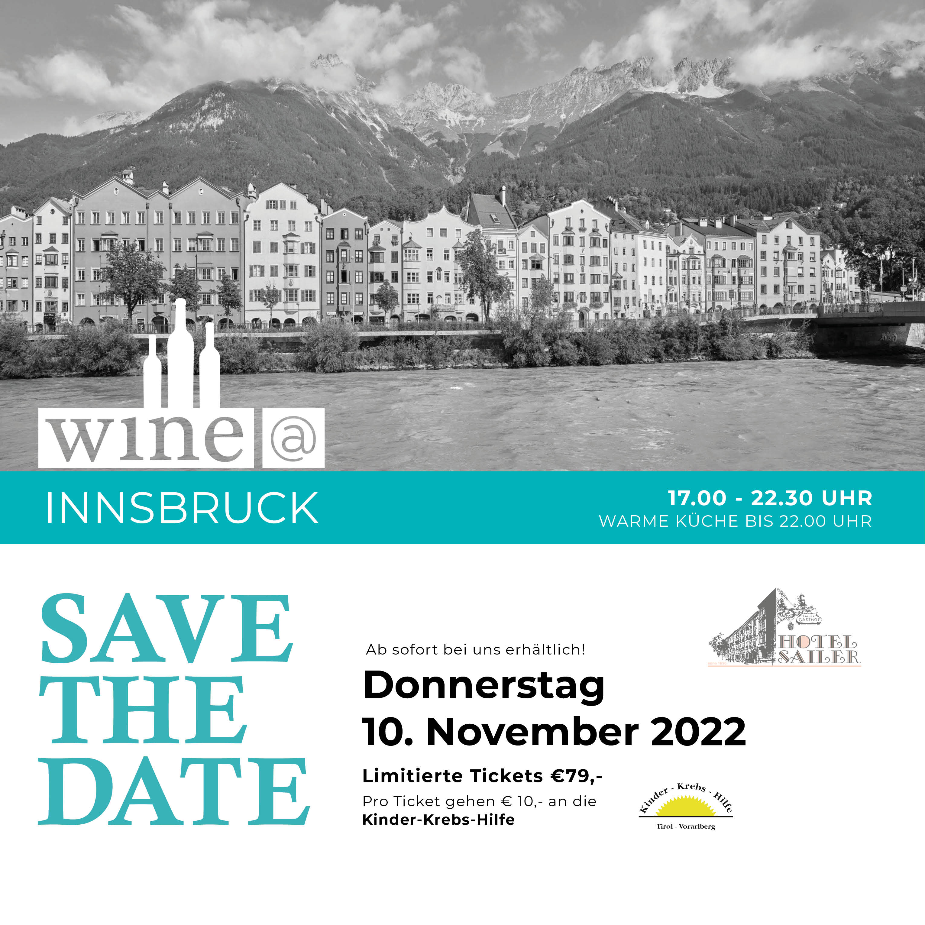 A limited number of tickets for the "Wine@Innsbruck" - Event 2022 you can get directly from us against CASH at the reception for only €79,00! Thereby € 10,- per ticket will be donated to the "Kinder-Krebs-Hilfe Tirol & Vorarlberg".