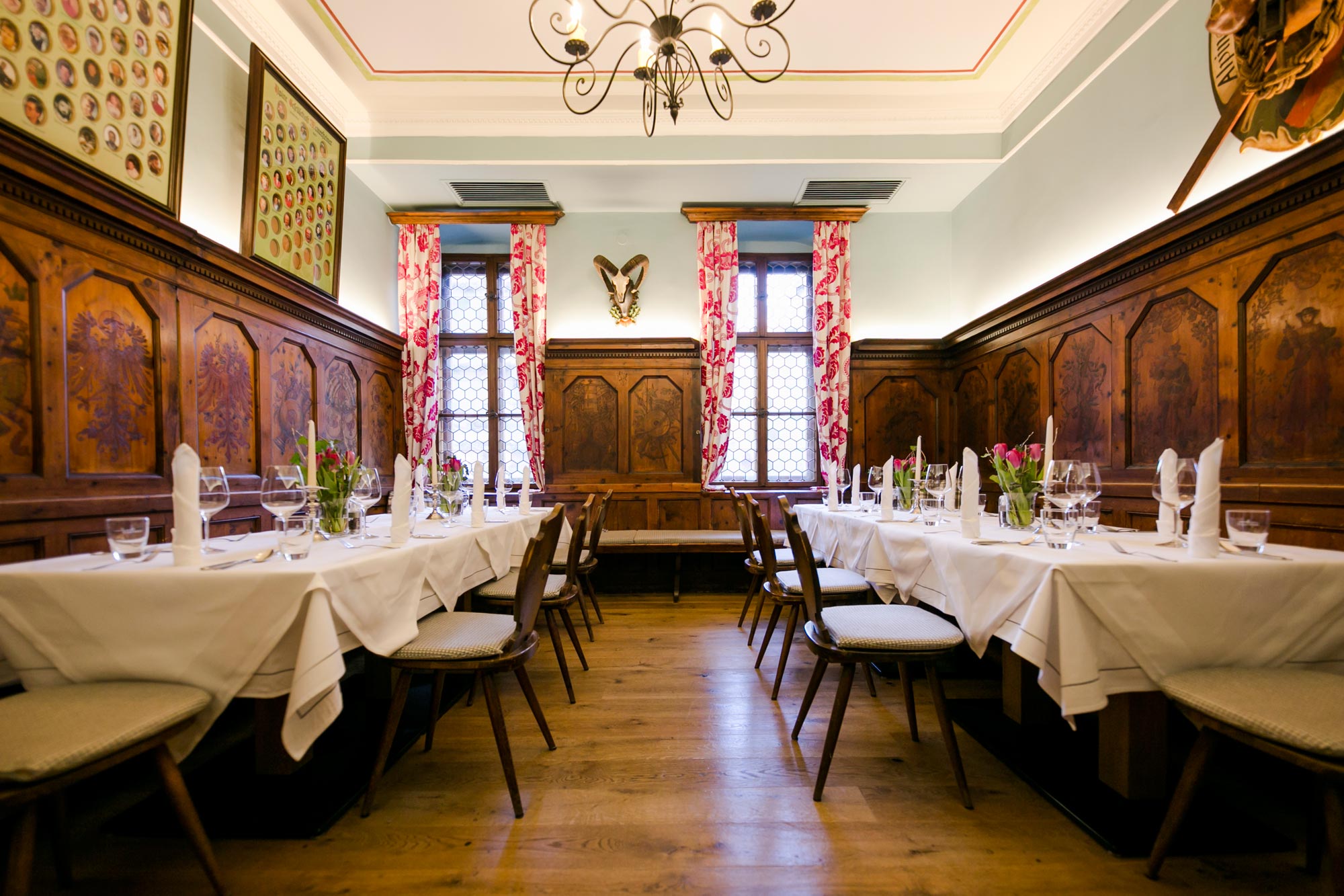 Are you interested in dining in the Wettersteiner Stube? Simply book your table with an online reservation, send us a personal email at hotel@sailer-innsbruck.at or give us a call on +43 512 5363.