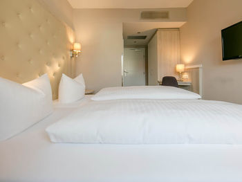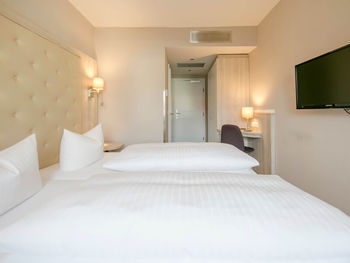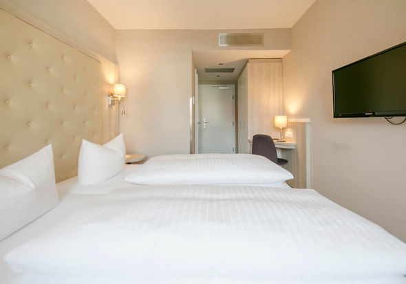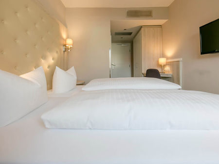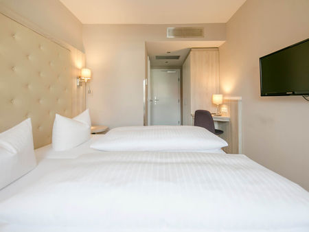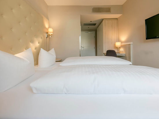 Le nostre Camere Basic, rivolte verso la strada, offrono 16 m² di comfort moderno in una posizione centrale. Il pavimento in parquet crea un’atmosfera accogliente, mentre la TV a schermo piatto e il Wi-Fi assicurano intrattenimento e connessione. Il bagno è dotato di vasca o doccia, asciugacapelli e specchio cosmetico – perfetto per la cura quotidiana.