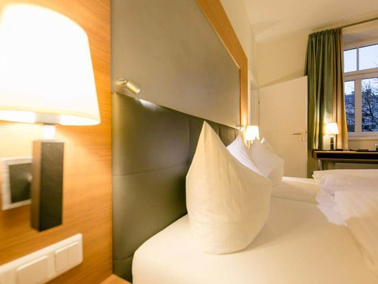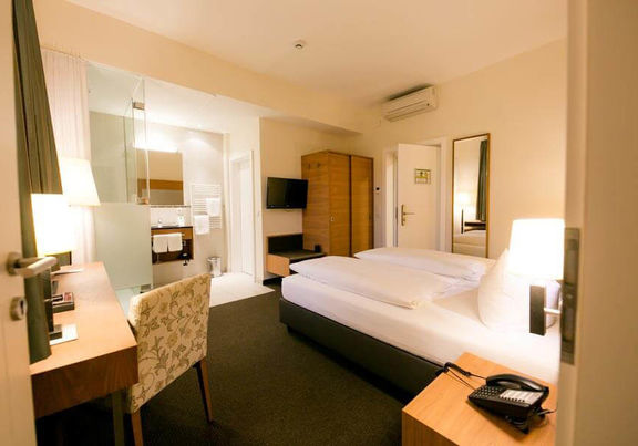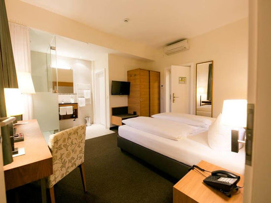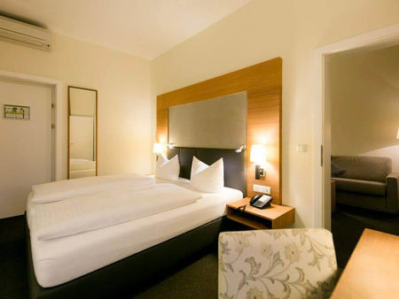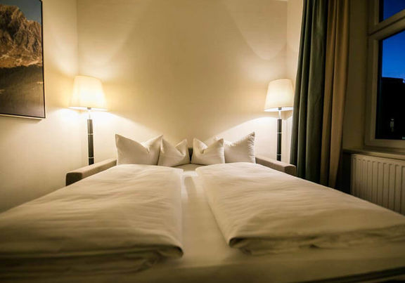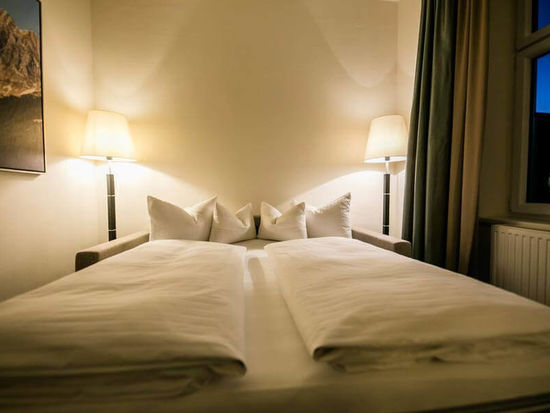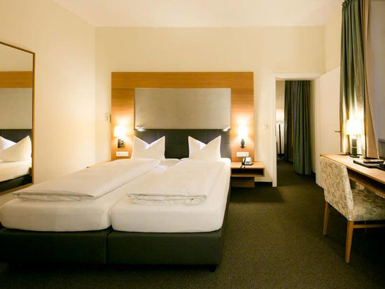 Nella nostra Junior Suite vi aspettano il massimo del comfort e tanto spazio per un soggiorno rilassante fino a quattro persone. Le camere rivolte verso il cortile offrono un’atmosfera particolarmente tranquilla – ideale per notti rigeneranti. Su 32 m² troverete una camera da letto elegantemente arredata e una zona notte separata con due letti singoli. Una delle nostre Junior Suite dispone in alternativa di un comodo divano letto.