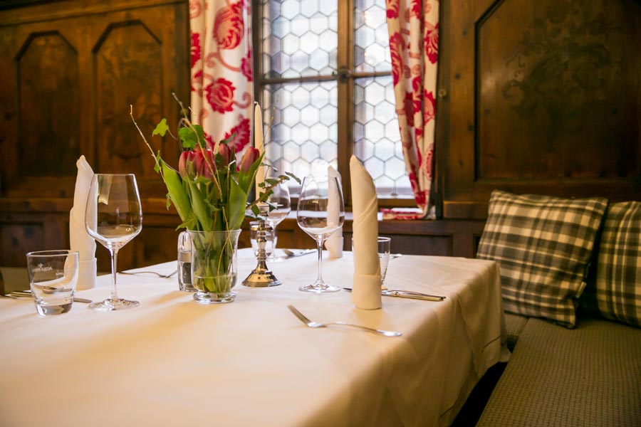 Per raggiungere le diverse stube si passa per il tradizionale "Gangl" in pino cembro, dove è anche collocato l’apprezzato tavolo per clienti abituali, che può ospitare fino a 14 persone. La sala più antica e più amata dai clienti è la Sailerstube, che è completamente rivestita di pino cembro e proviene originariamente da una casa padronale della valle di Paznaun. L'atmosfera della Wettersteinstube è particolarmente rustica, mentre la Bürgerstube, con il suo look spigliato e festoso, emana un fascino più moderno. Per chi preferisce le atmosfere dei vecchi tempi, la Jägerstube e la Bauernstube sono gli ambienti ideali. Ce n'è per tutti i gusti!