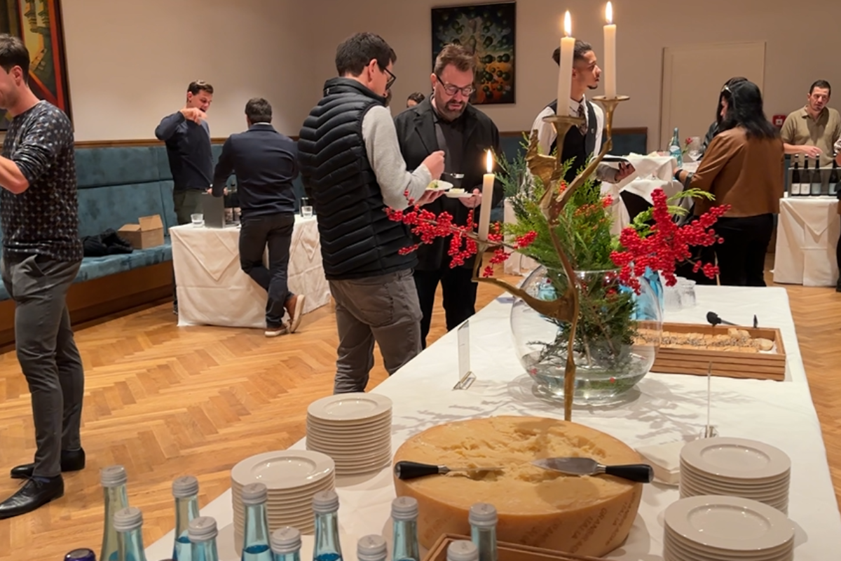 Begleitet wurde die Verkostung von einem Flying Dinner, das Küchenchef Richard Benedikter eigens für diesen Anlass zusammengestellt hatte. Seine fein abgestimmten Gerichte harmonierten perfekt mit den präsentierten Weinen und machten den Abend zu einem kulinarischen Erlebnis, das Gaumen und Sinne gleichermaßen begeisterte.